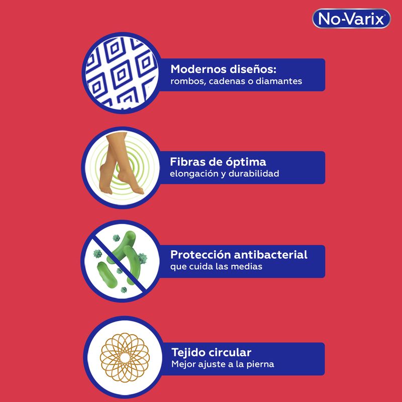 MEDIAS DE COMPRESIÓNMediana (15 - 20 mmHg)Medias No-Varix® mujer 15-20 mmHg colors diseño diamante grande